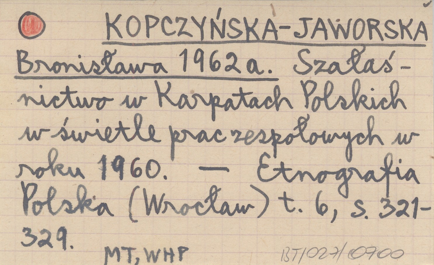 KOPCZYŃSKA-JAWORSKA Bronisława 1962 a Szałaśnictwo w Karpatach Polskich w świetle prac zespołowych w roku 1960.