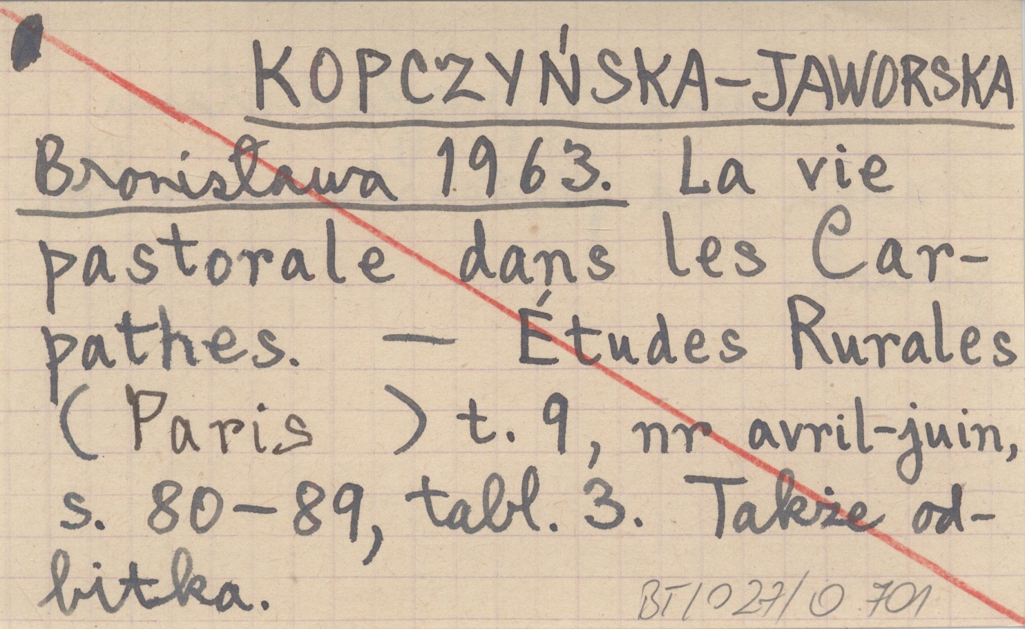Études Rurales (Paris) , T. 9, nr avril-juin: 80-89, 3 k. tabl. Zwięzły przegląd stanu badań nad pasterstwem w Karpatach. Także odbitka.