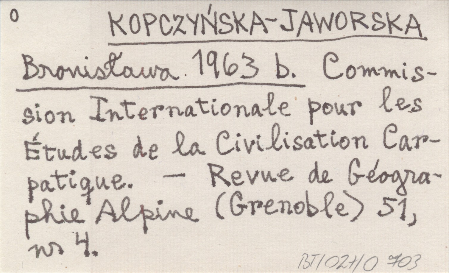 KOPCZYŃSKA-JAWORSKA Bronisława 1963 b Commission Internationale pour les Études de la Civilisation Carpatique.