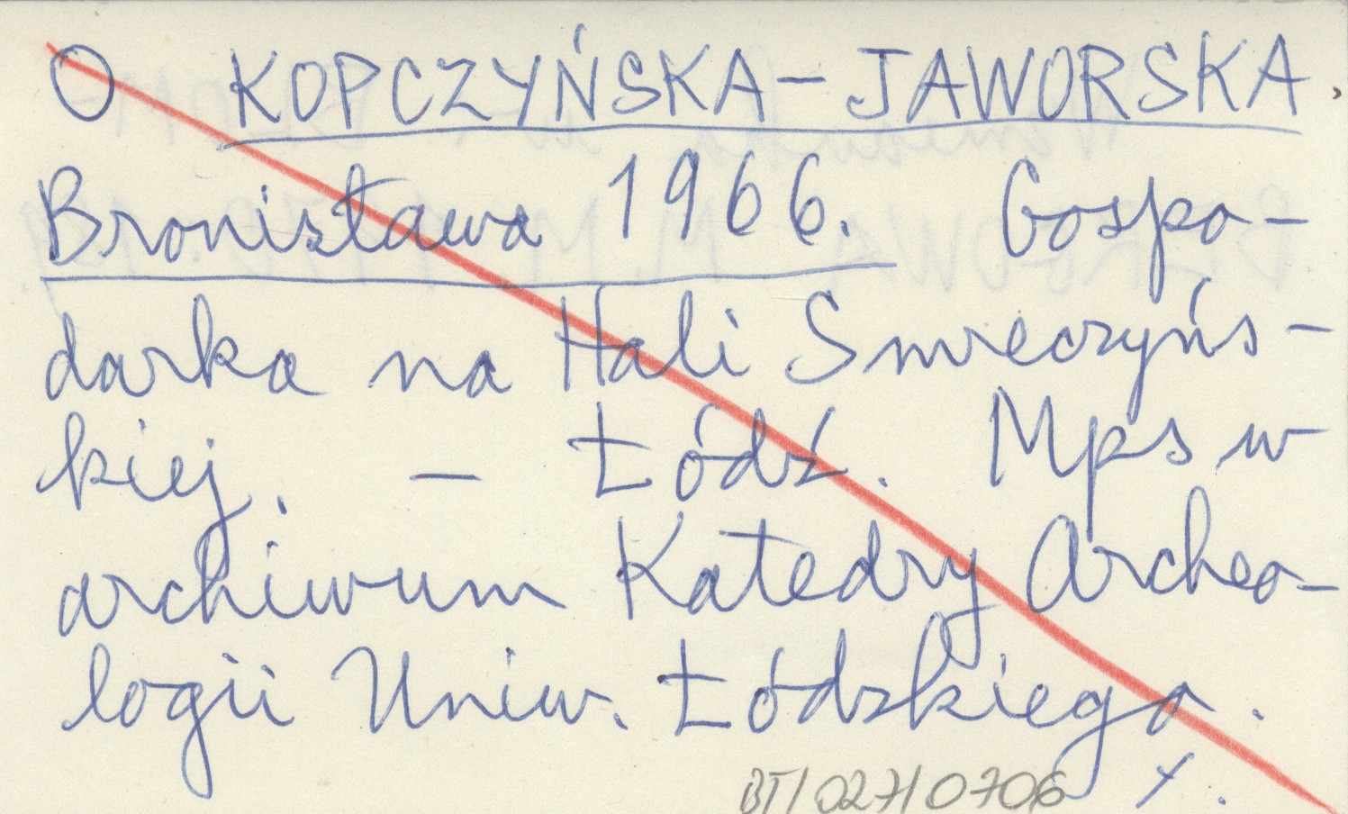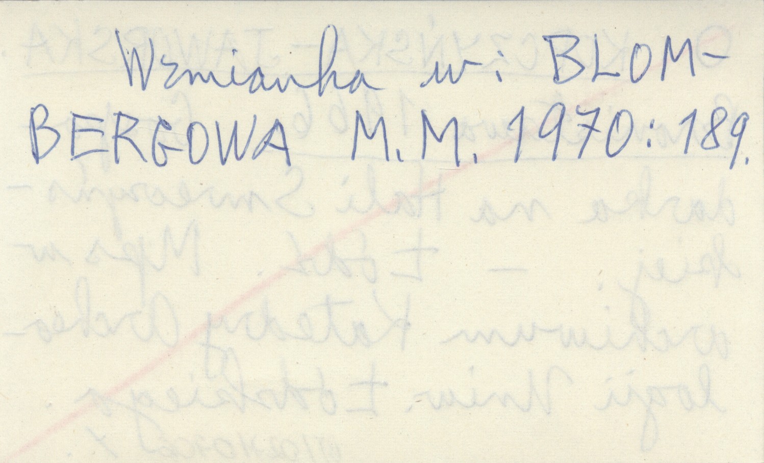 Łódź , Mps w archiwum Katedry Archeologii Uniw. Łódzkiego. Wzmianka w: BLOMBERGOWA M. M. 1970: 189