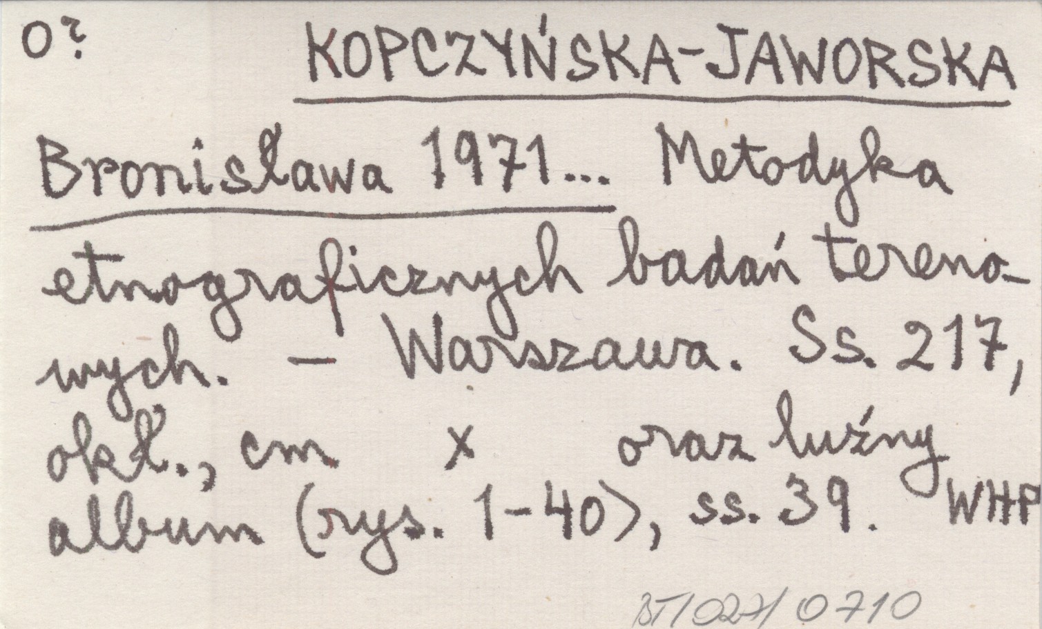 KOPCZYŃSKA-JAWORSKA Bronisława 1971... Metodyka etnograficznych badań terenowych.