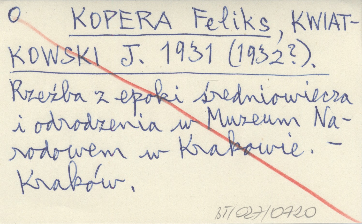 KOPERA Feliks KWIATKOWSKI, J. ; 1931 (1932?) Rzeźba z epoki średniowiecza i odrodzenia w Muzeum Narodowem w Krakowie.