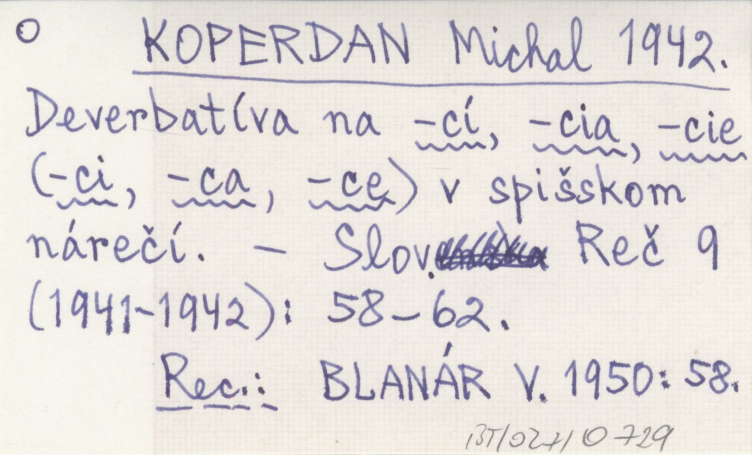 KOPERDAN Michal 1942 Deverbatíva na -cí, -cia, -cie (-ci, -ca, -ce) v spišskom nárečí.