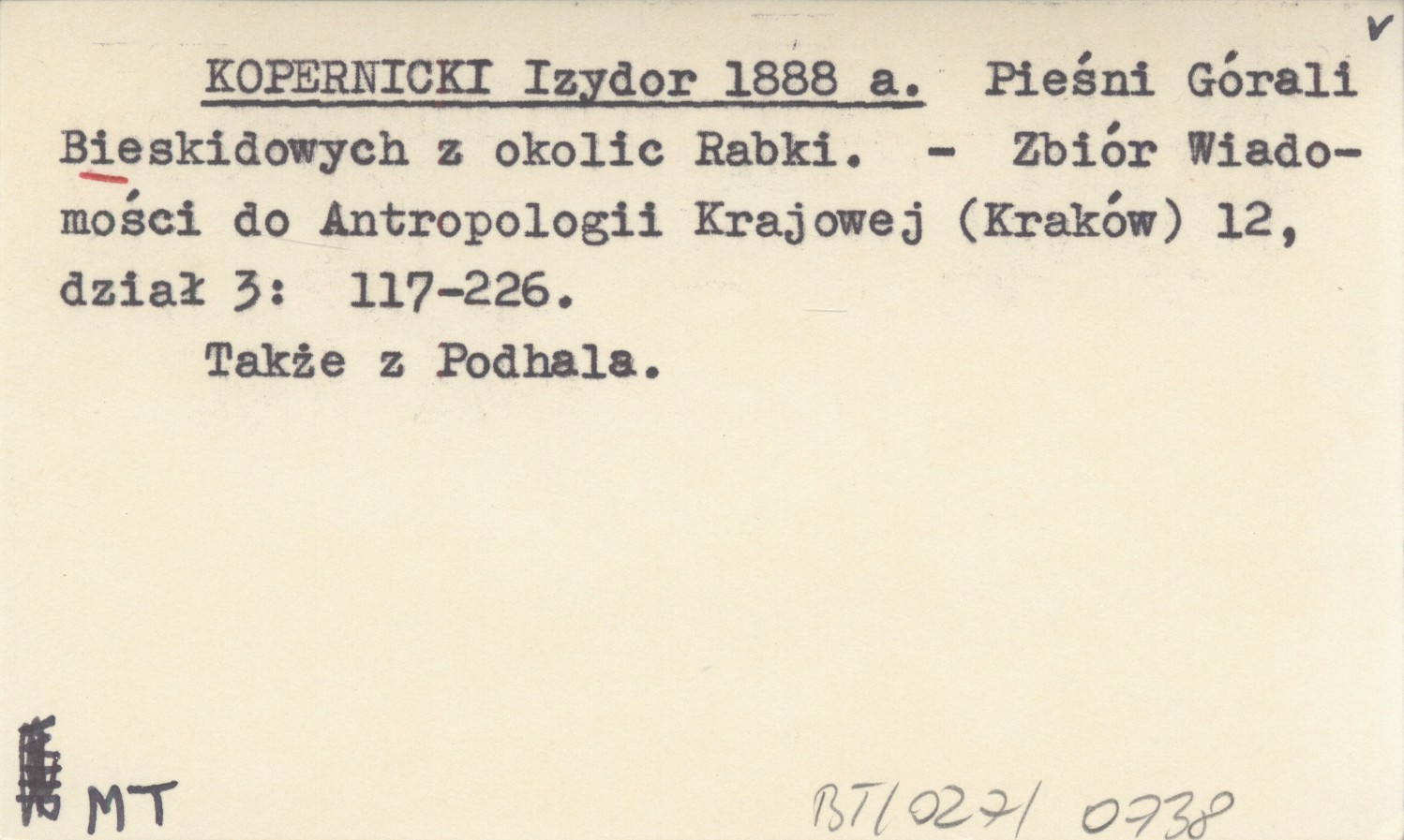 KOPERNICKI Izydor 1888 a Pieśni Górali Bieskidowych z okolic Rabki.