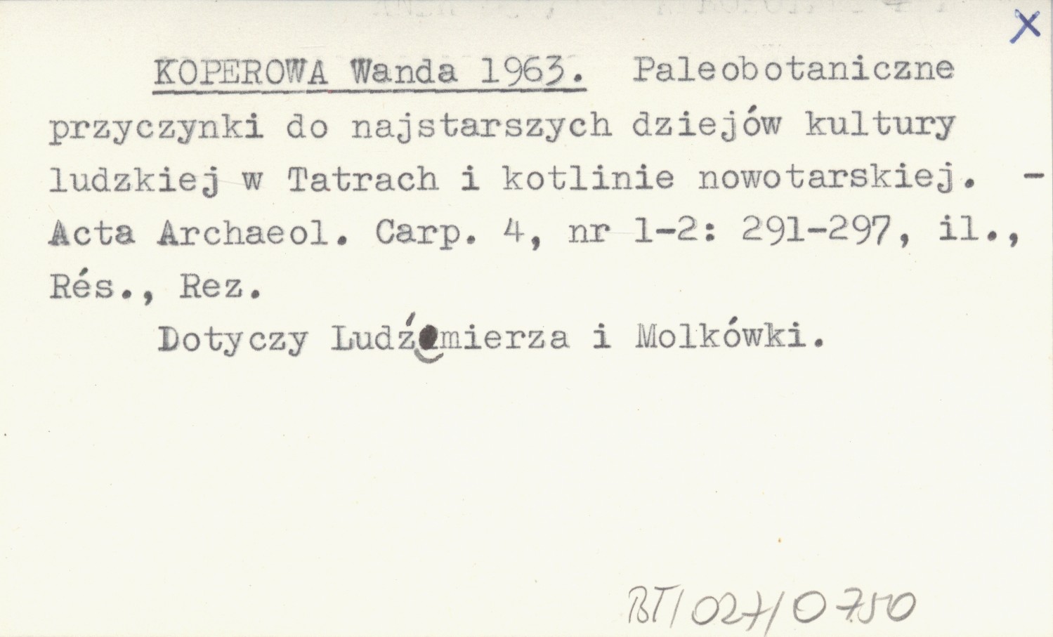 KOPEROWA Wanda 1963 Paleobotaniczne przyczynki do najstarszych dziejów kultury ludzkiej w Tatrach i kotlinie nowotarskiej.