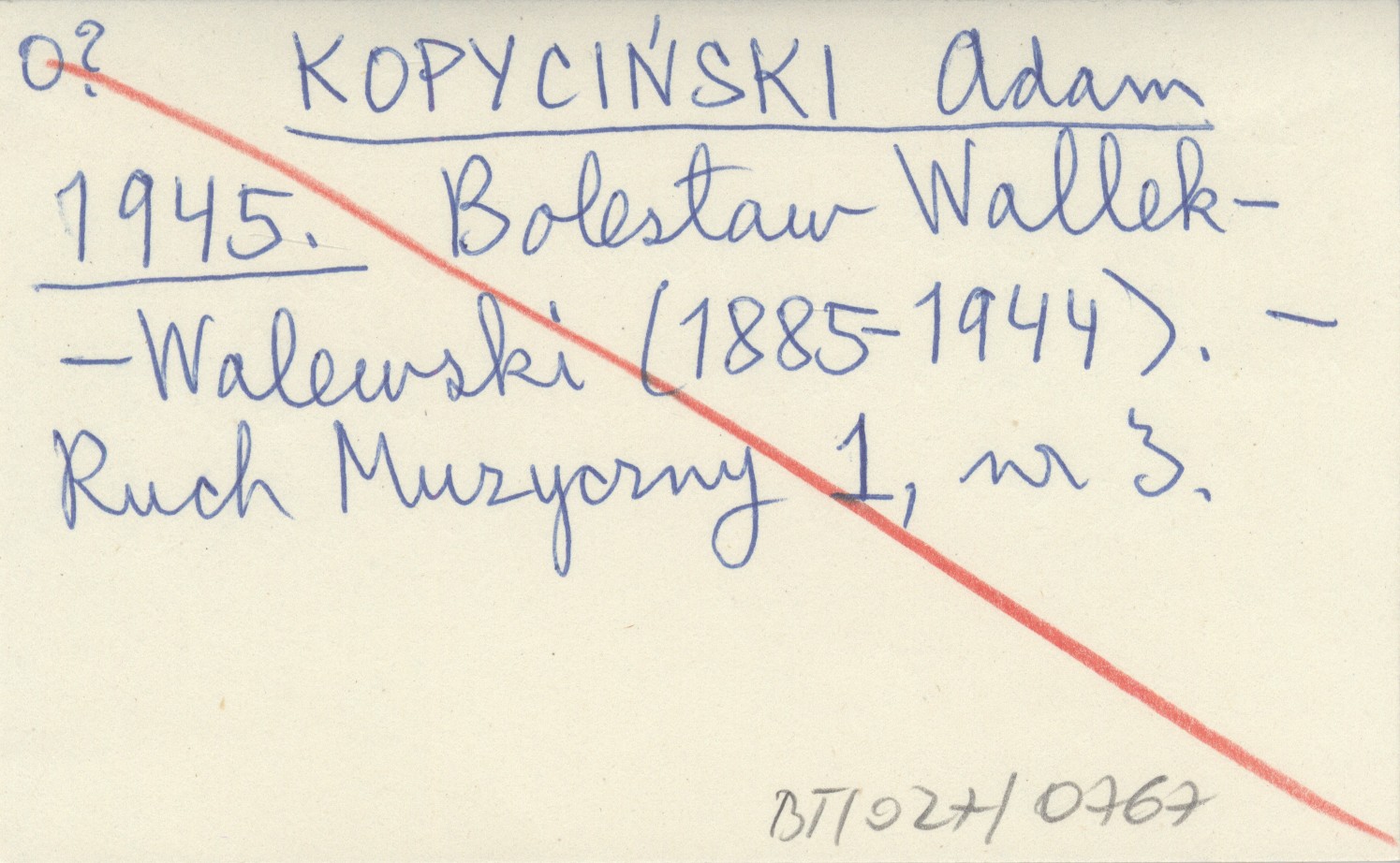 KOPYCIŃSKI Adam 1945 Bolesław Wallek-Walewski (1885-1944).