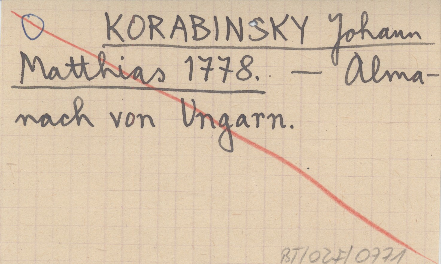 KORABINSKY Johann Matthias 1778 Almanach von Ungarn.