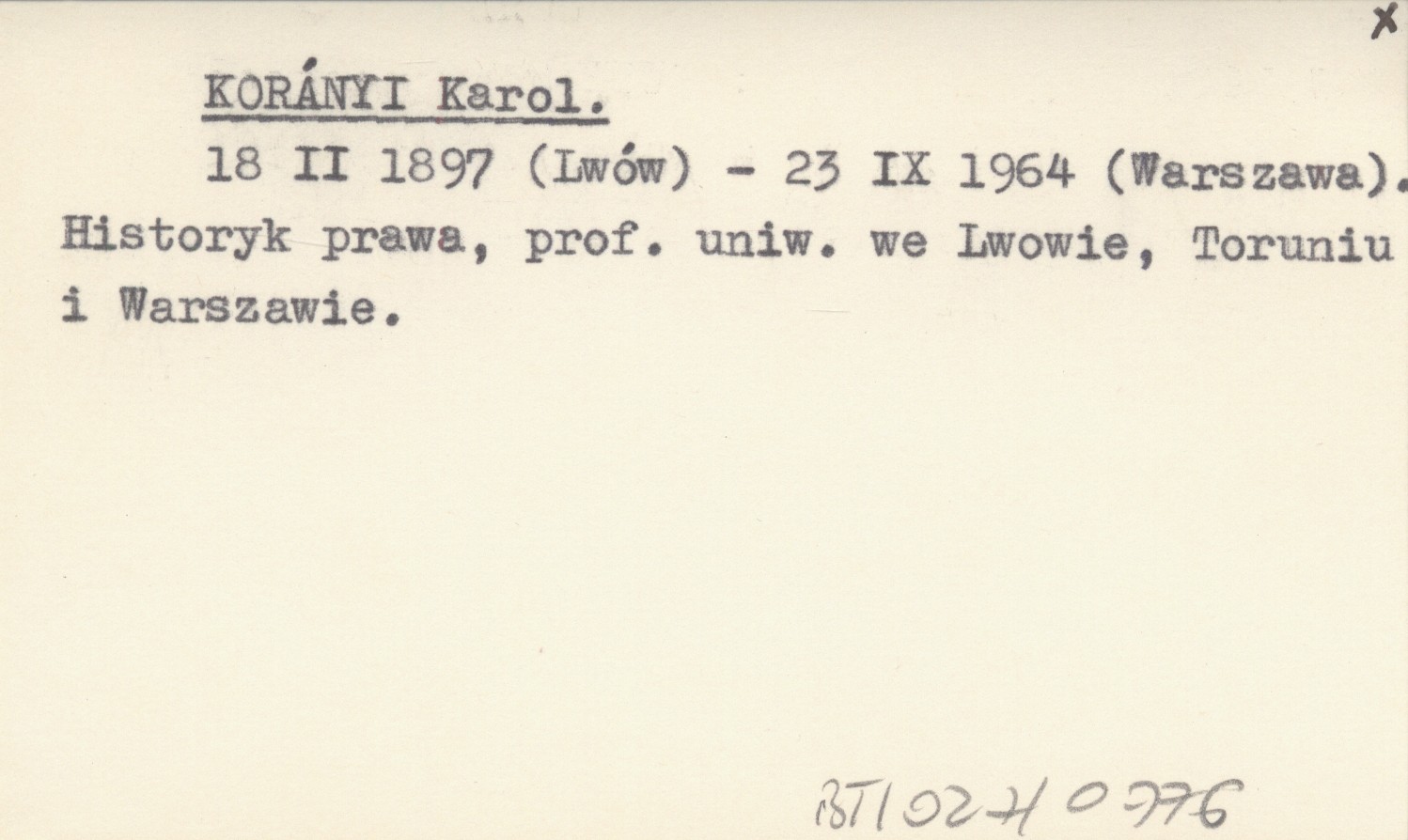 18 II 1897 (Lwów) - 23 IX 1964 (Warszawa). Historyk prawa, prof. uniw. we Lwowie, Toruniu i Warszawie.