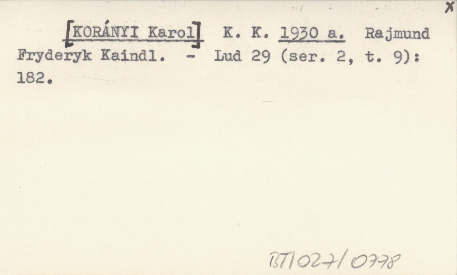 K. K. [KORÁNYI Karol] 1930 a Rajmund Fryderyk Kaindl.