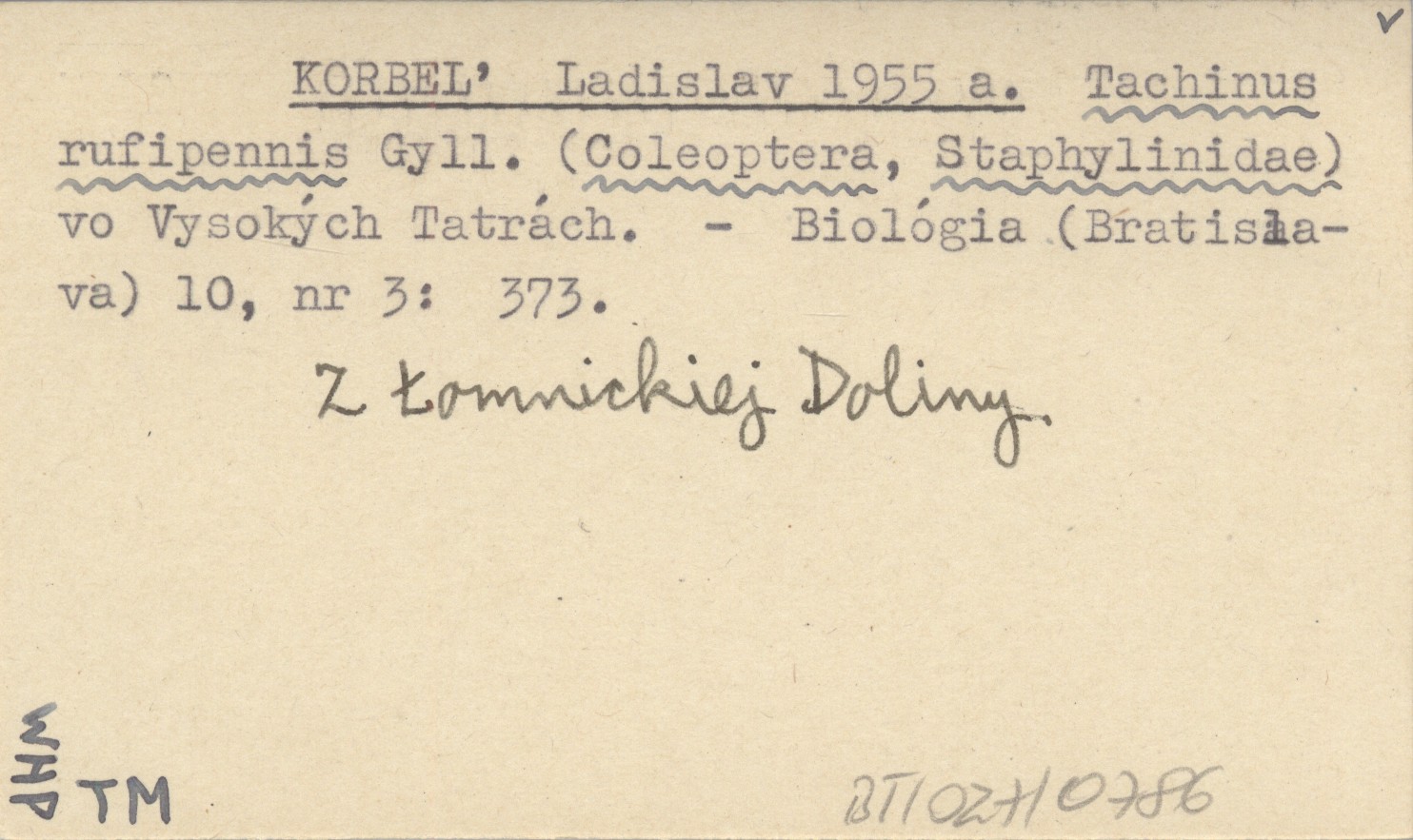 KORBE„ Ladislav 1955 a Tachinus rufipennis Gyll. (Coleoptera, Staphylinidae) vo Vysokęch Tatrách.