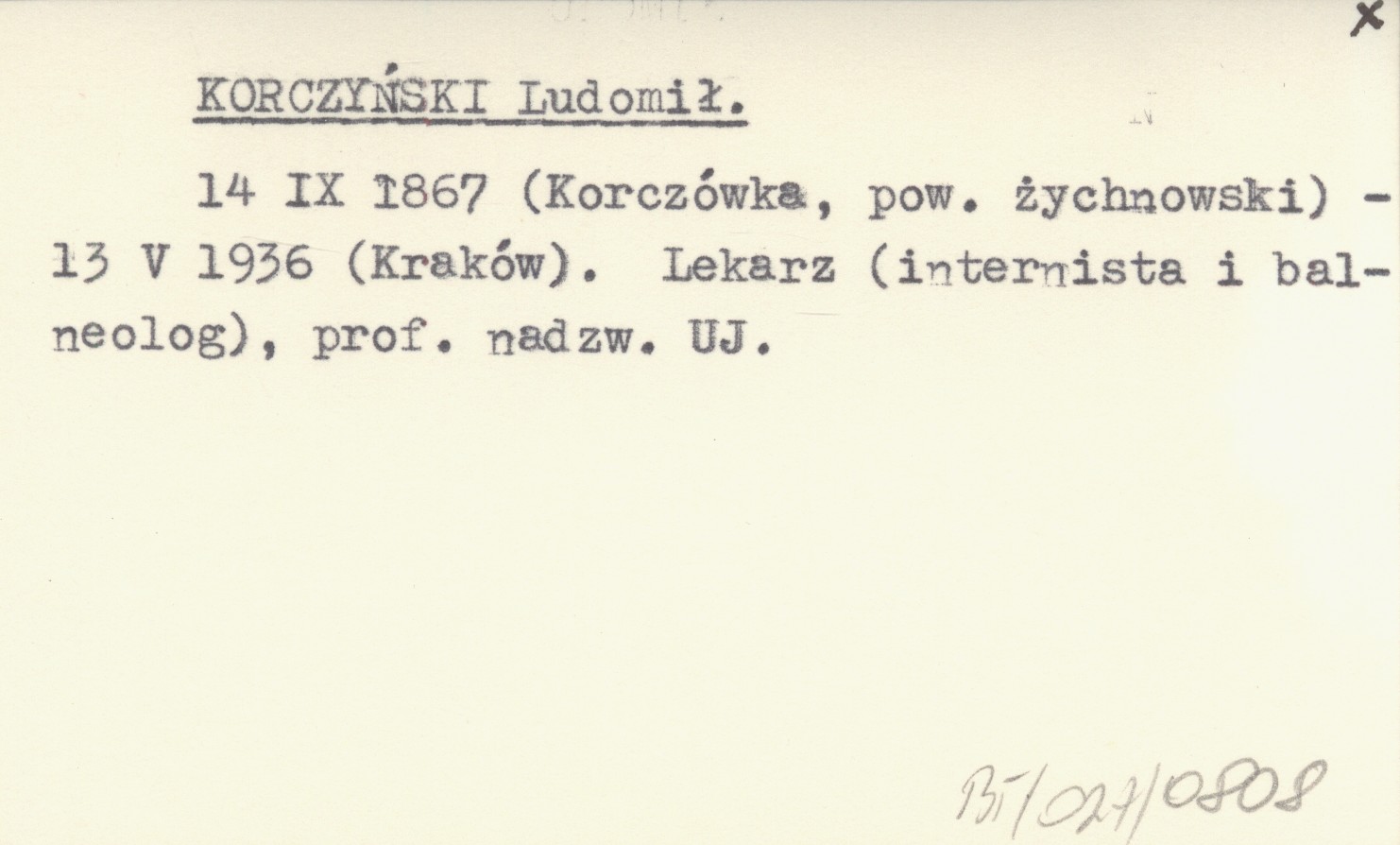 14 IX 1867 (Korczówka, pow. żychnowski) - 13 V 1936 (Kraków). Lekarz (internista i balneolog), prof. nadzw. UJ.