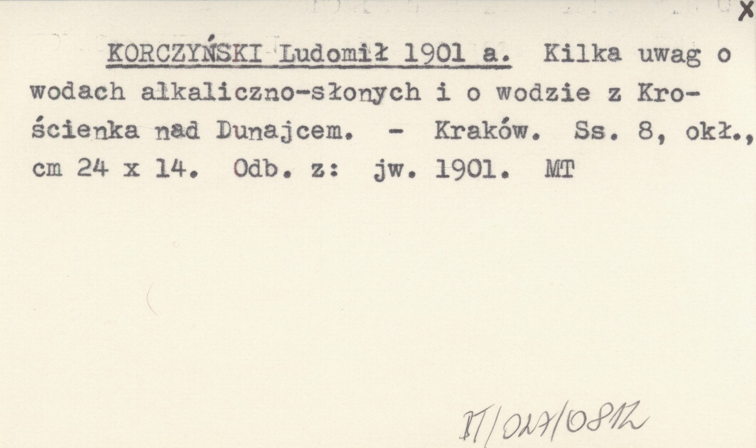 KORCZYŃSKI Ludomił 1901 a Kilka uwag o wodach alkaliczno-słonych i o wodzie z Krościenka nad Dunajcem.