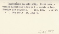 KORCZYŃSKI Ludomił 1901 Kilka uwag o wodach alkaliczno-słonych i o wodzie z Krościenka nad Dunajcem.
