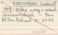 KORCZYŃSKI Ludomił 1909 Kilka uwag o wodach szczawnickich.