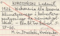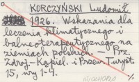 KORCZYŃSKI Ludomił 1926 Wskazania dla leczenia klimatycznego i balneoterapeutycznego na ziemiach polskich.