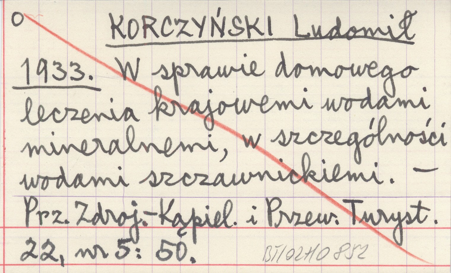 KORCZYŃSKI Ludomił 1933 W sprawie domowego leczenia krajowemi wodami mineralnemi, w szczególności wodami szczawnickiemi.