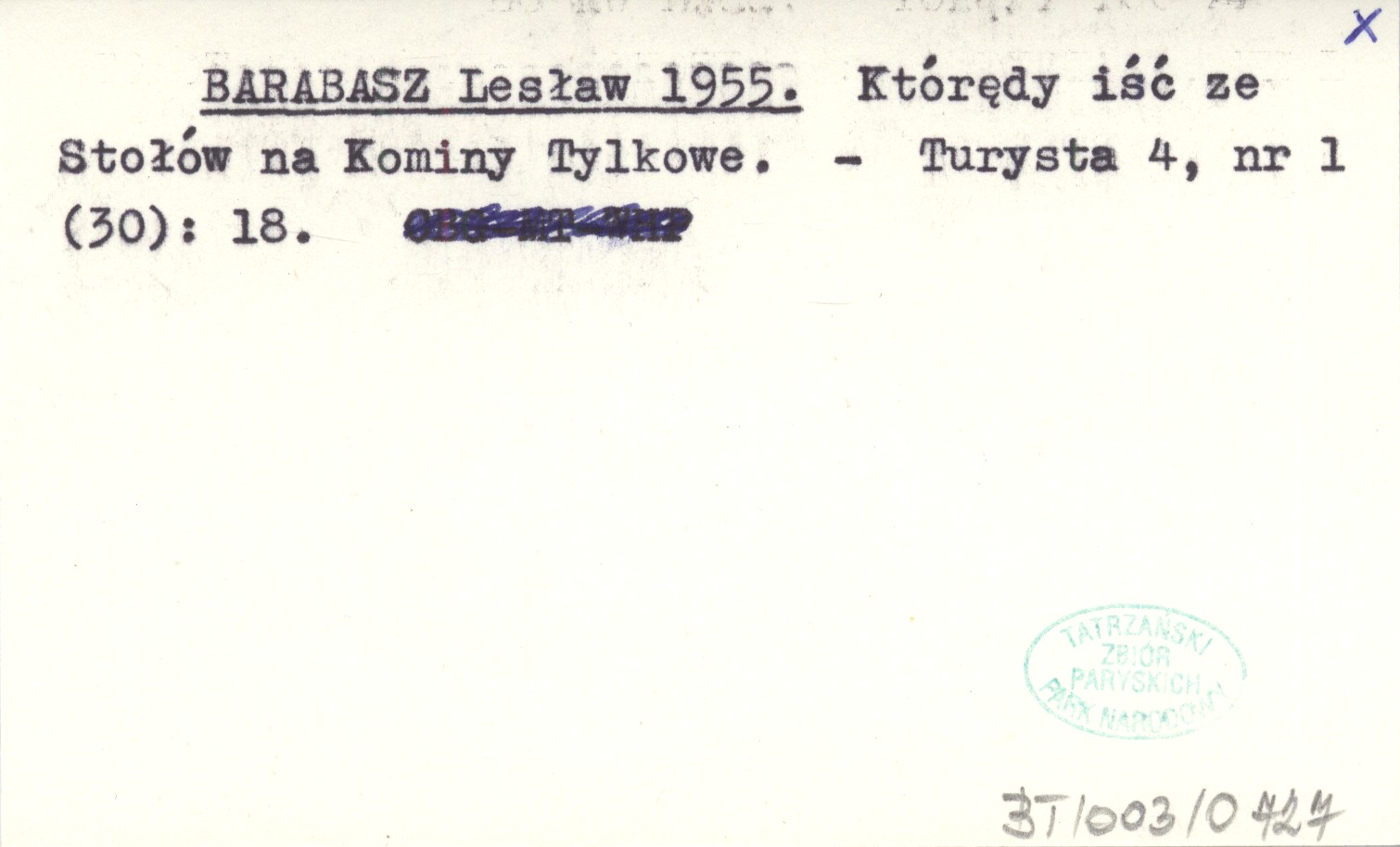 BARABASZ Lesław 1955 Którędy iść ze Stołów na Kominy Tylkowe.