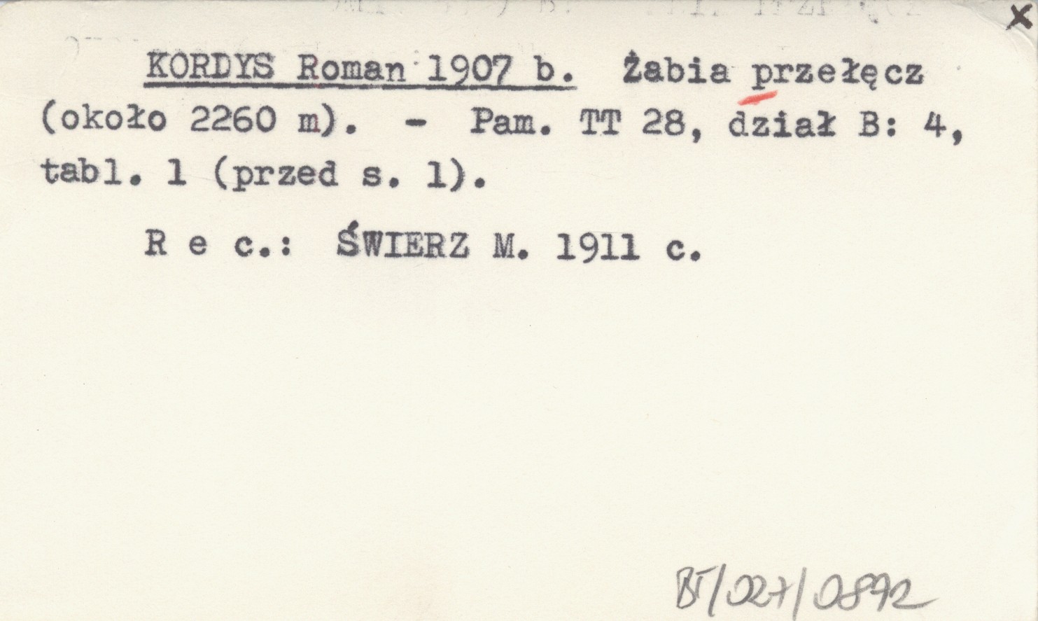 KORDYS Roman 1907 b Żabia przełęcz (około 2260 m).