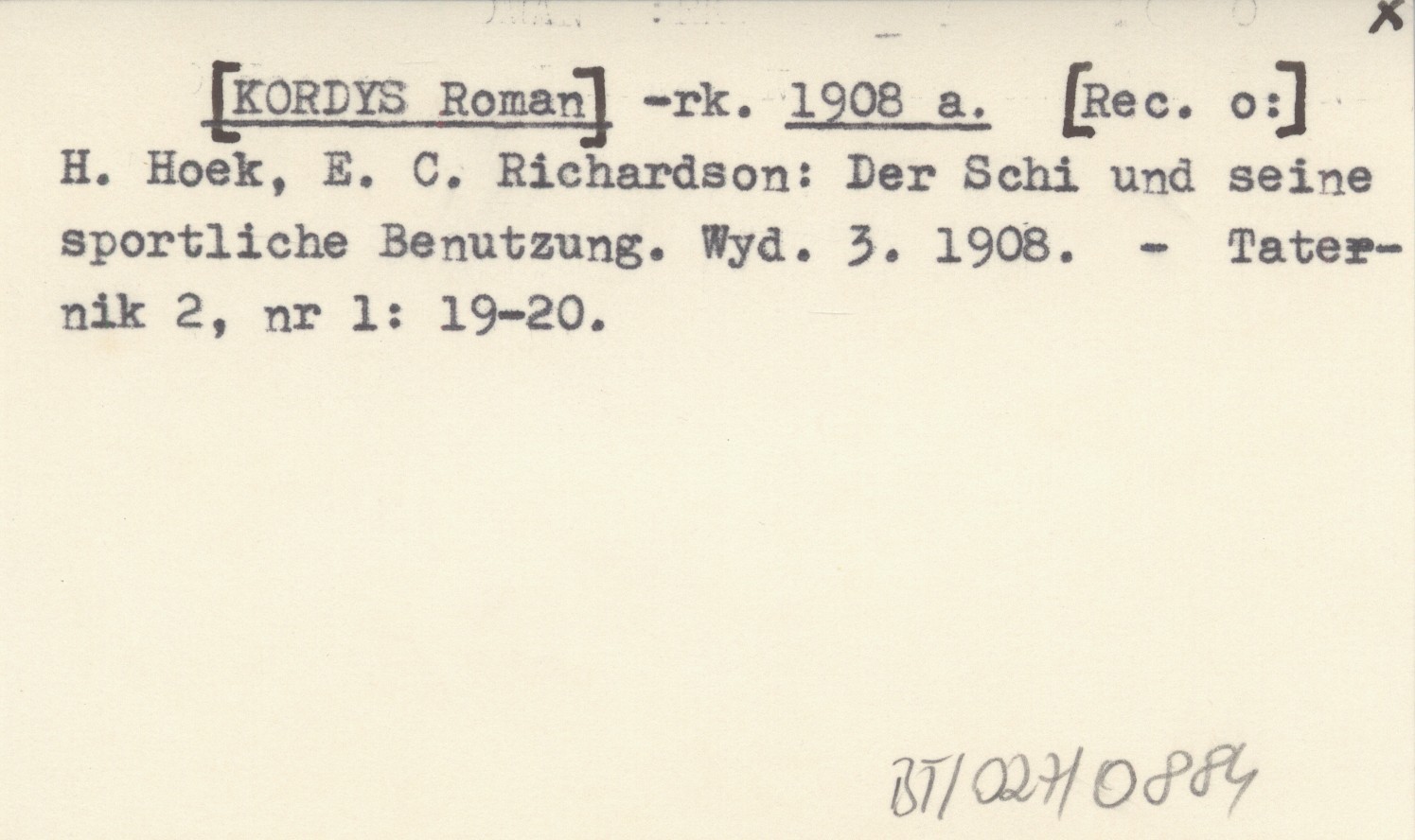 -rk. [KORDYS Roman] 1908 a H. Hoek, E. C. Richardson: Der Schi und seine sportliche Benutzung.