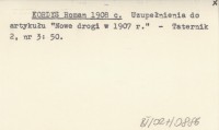 KORDYS Roman 1908 c Uzupełnienia do artykułu "Nowe drogi w 1907 r.".