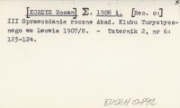 (Sigma). [KORDYS Roman] 1908 i III Sprawozdanie roczne Akad. Klubu Turystycznego we Lwowie 1907/8.