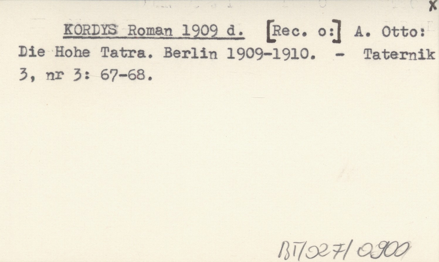 KORDYS Roman 1909 d A. Otto: Die Hohe Tatra. Berlin 1909-1910.