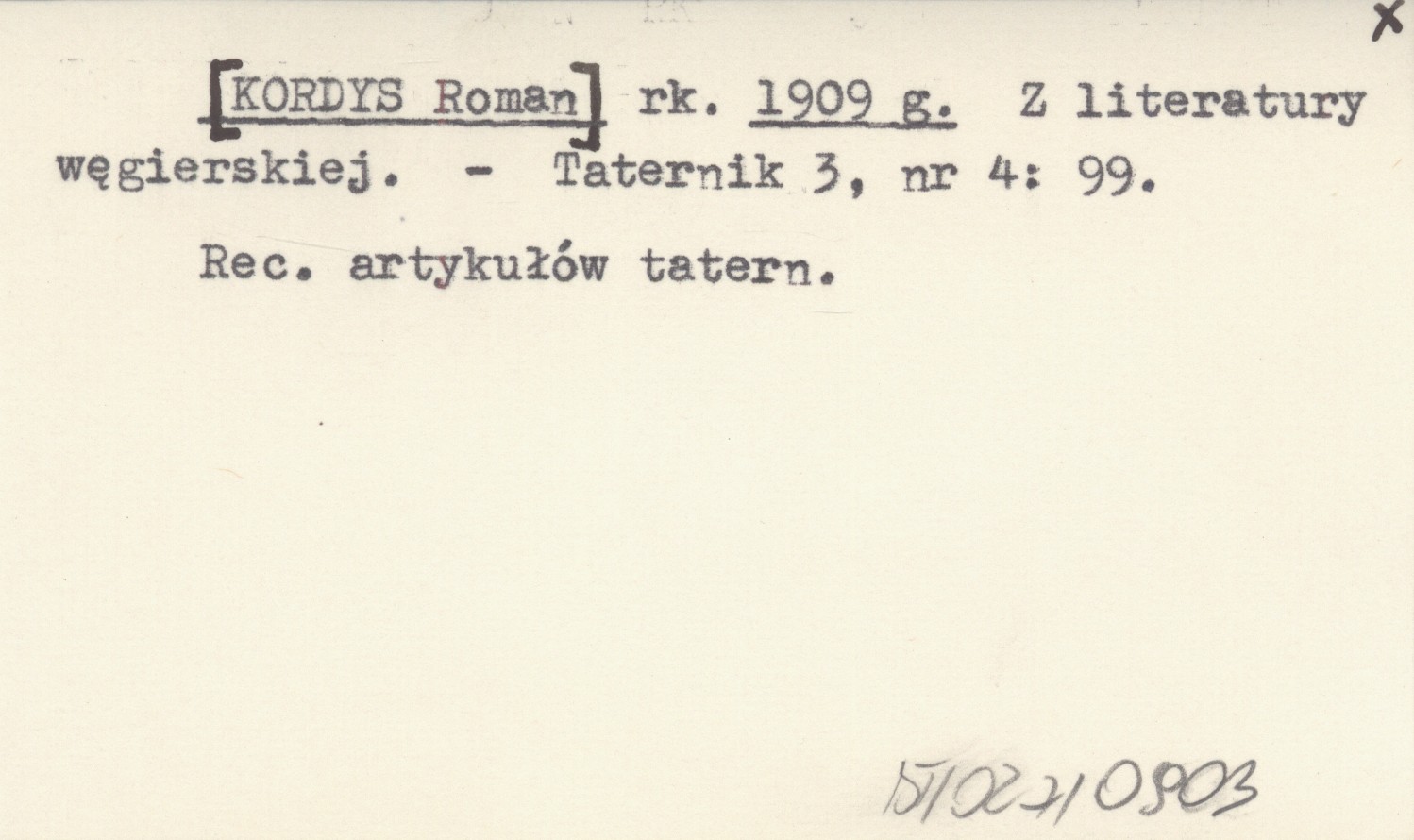 rk. [KORDYS Roman] 1909 g Z literatury węgierskiej.