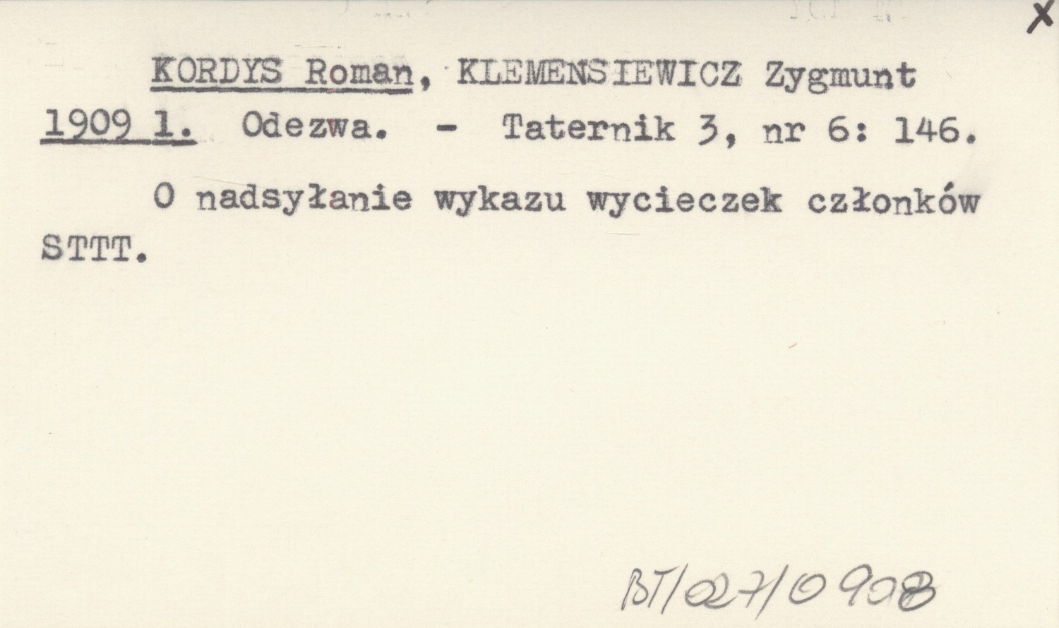 Taternik, 3, nr 6: 146. O nadsyłanie wykazu wycieczek członków STTT.