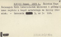 KORDYS Roman 1909 i Śnieżna Kopa Żelaznych Wrót (wierzchołek wschodni i główny); nowe zejście z tegoż ostatniego do Doliny Złomisk.