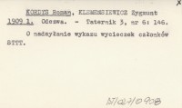 KORDYS Roman KLEMENSIEWICZ, Zygmunt. ; 1909 l Odezwa.