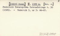 (Sigma). [KORDYS Roman] 1909 m Pamiętnik Towarzystwa Tatrzańskiego t. 30 (1909).