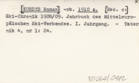 -rk. [KORDYS Roman] 1910 a Ski-Chronik 1908/09. Jahrbuch des Mitteleuropäischen Ski-Verbandes. I. Jahrgang.