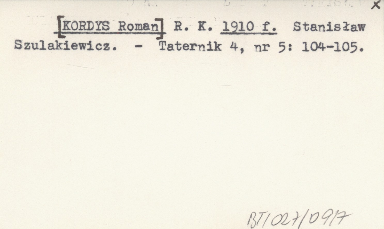 R. K. [KORDYS Roman] 1910 f Stanisław Szulakiewicz.