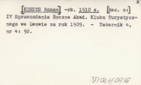 -rk. [KORDYS Roman] 1910 e IV Sprawozdanie Roczne Akad. Klubu Turystycznego we Lwowie za rok 1909.