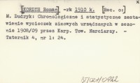 -rk [KORDYS Roman] 1910 k M. Dudryk: Chronologiczne i statystyczne zestawienie wycieczek zimowych urządzanych w sezonie 1908/09 przez Karp. Tow. Narciarzy.