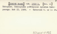 -rk. [KORDYS Roman] 1910 l Zakopane. Czasopismo poświęcone sprawom Zakopanego. Rok II. 1909.