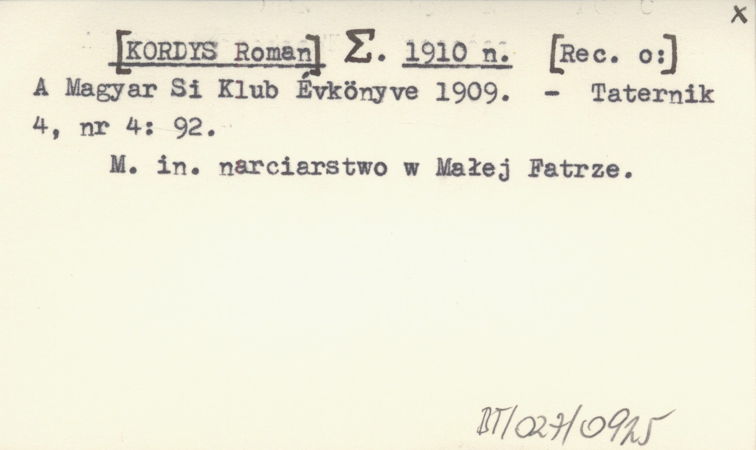 (Sigma). [KORDYS Roman] 1910 n A Magyar Si Klub Évkönyve 1909.
