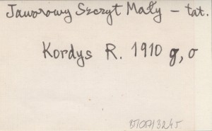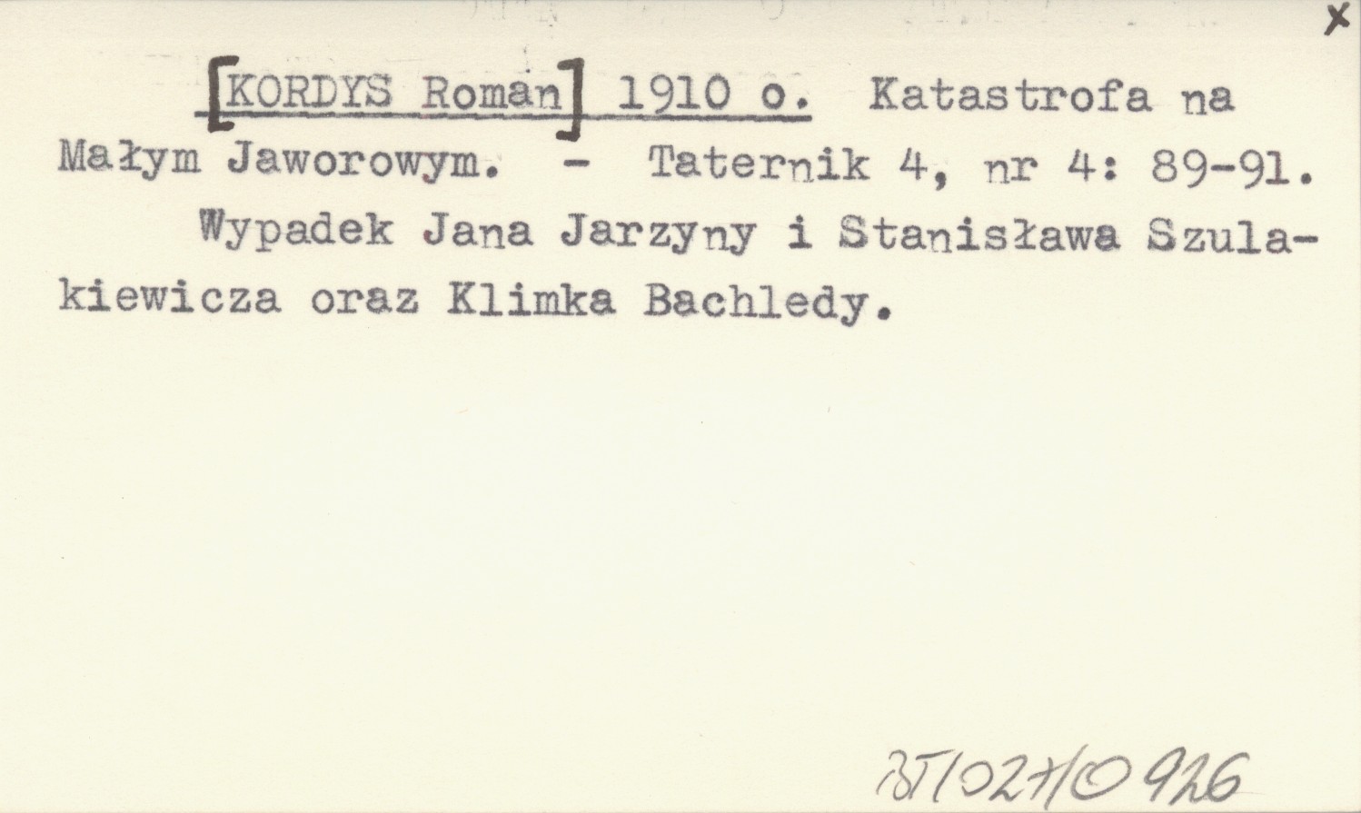 [KORDYS Roman] 1910 o Katastrofa na Małym Jaworowym.