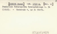 -rk. [KORDYS Roman] 1910 m Pamiętnik Towarzystwa Tatrzańskiego t. 31 (1910).