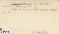 KORDYS Roman 1911 c Nadesłane.