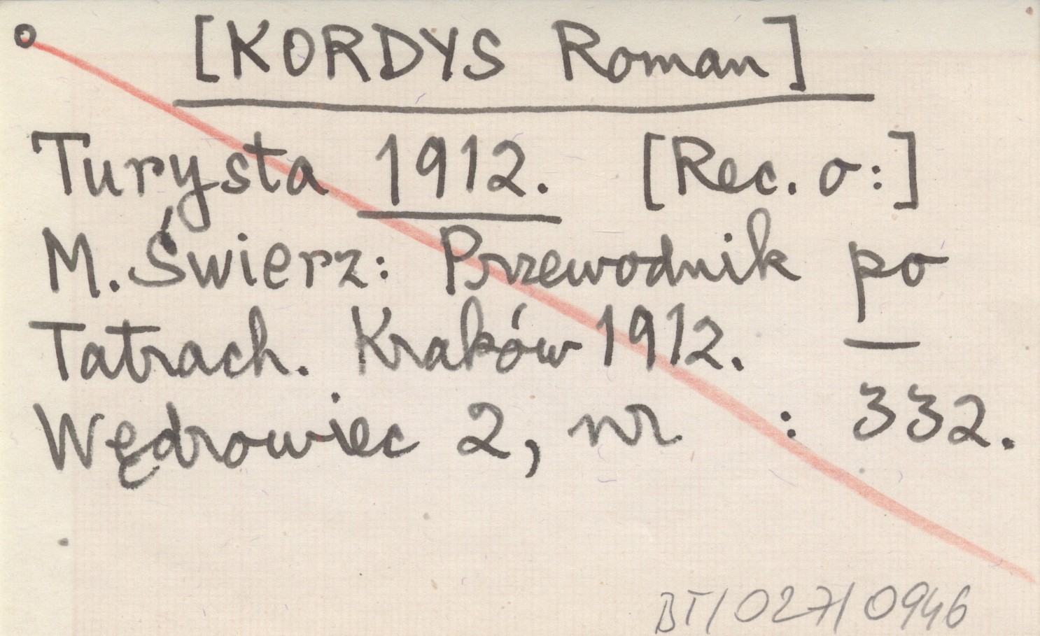Turysta [KORDYS Roman] 1912 M. Świerz: Przewodnik po Tatrach. Kraków 1912.