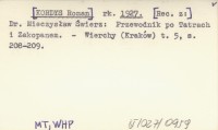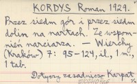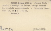 KORDYS Roman 1928 c Pomiary niektórych wzniesień w Tatrach Zachodnich.