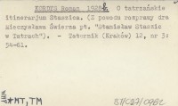 KORDYS Roman 1928 b O tatrzańskie itinerarjum Staszica. (Z powodu rozprawy dra Mieczysława Świerza pt. "Stanisław Staszic w Tatrach").