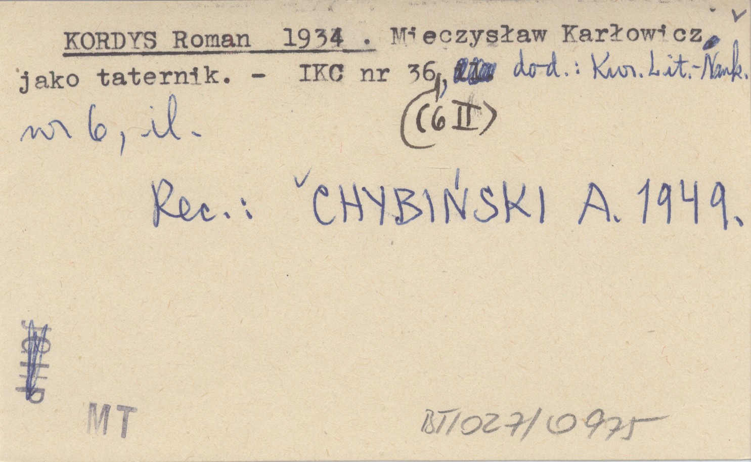 KORDYS Roman 1934 Mieczysław Karłowicz jako taternik.