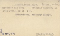 KORDYS Roman 1932 Ściana, której zapomnieć nie mogę.