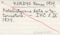 KORDYS Roman 1934 Fatalistyczna data w taternictwie.