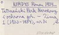 KORDYS Roman 1934... Tatrzański Park Narodowy i ochrona gór.