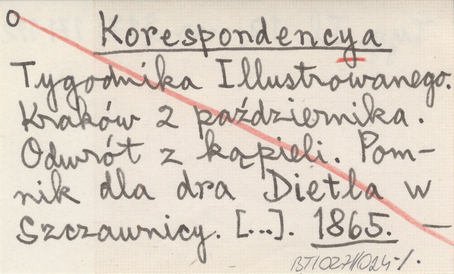 Korespondencya Tygodnika Illustrowanego. Kraków 2 października. Odwrót z kąpieli. Pomnik dla dra Dietla w Szczawnicy. [...]. 1865