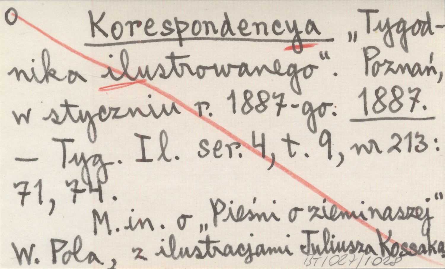 Tygodnik Ilustrowany, Ser. 4, t. 9, nr 213: 71, 74. M.in. o "Pieśni o ziemi naszej" W. Pola, z ilustracjami Juliusza Kossaka.