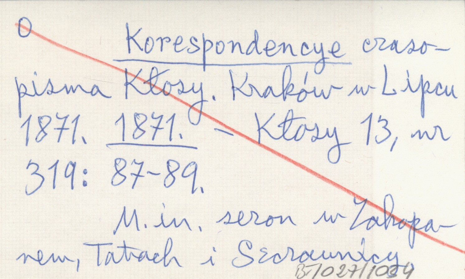 Korespondencye czasopisma Kłosy. Kraków w Lipcu 1871. 1871